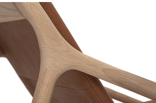 Materialen: Het frame is vervaardigd uit handgeselecteerd massief hout, specifiek eik of Europese walnoot. De zitting is bekleed met hoogwaardig leder.