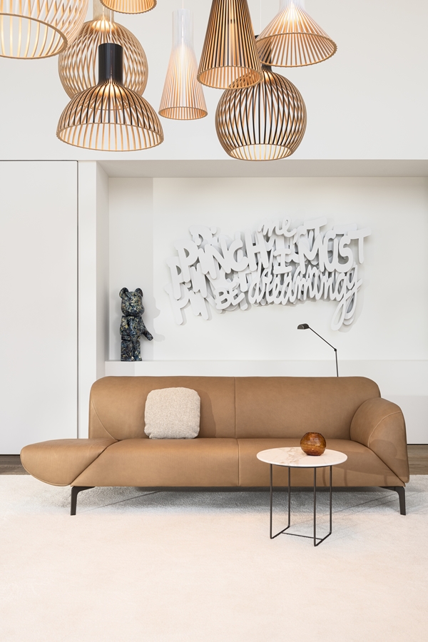 Maak kennis met de Jori Como, een bank die Uw ogen streeld door haar organische lijnen en moderne karakter. De vernieuwende, draaibare armleggers zorgen voor een uniek gebruiksgemak: creëer met het handige pedaaltje extra zitruimte of geniet van ultiem comfort in een ontspannen houding. Het massieve beukenhouten frame zorgt voor de degelijkheid, terwijl de gelakte hoekpoten een verfijnde elegantie toevoegen aan het geheel. De Jori Como is leverbaar in een breed scala aan hoogwaardige stoffen en leersoorten.