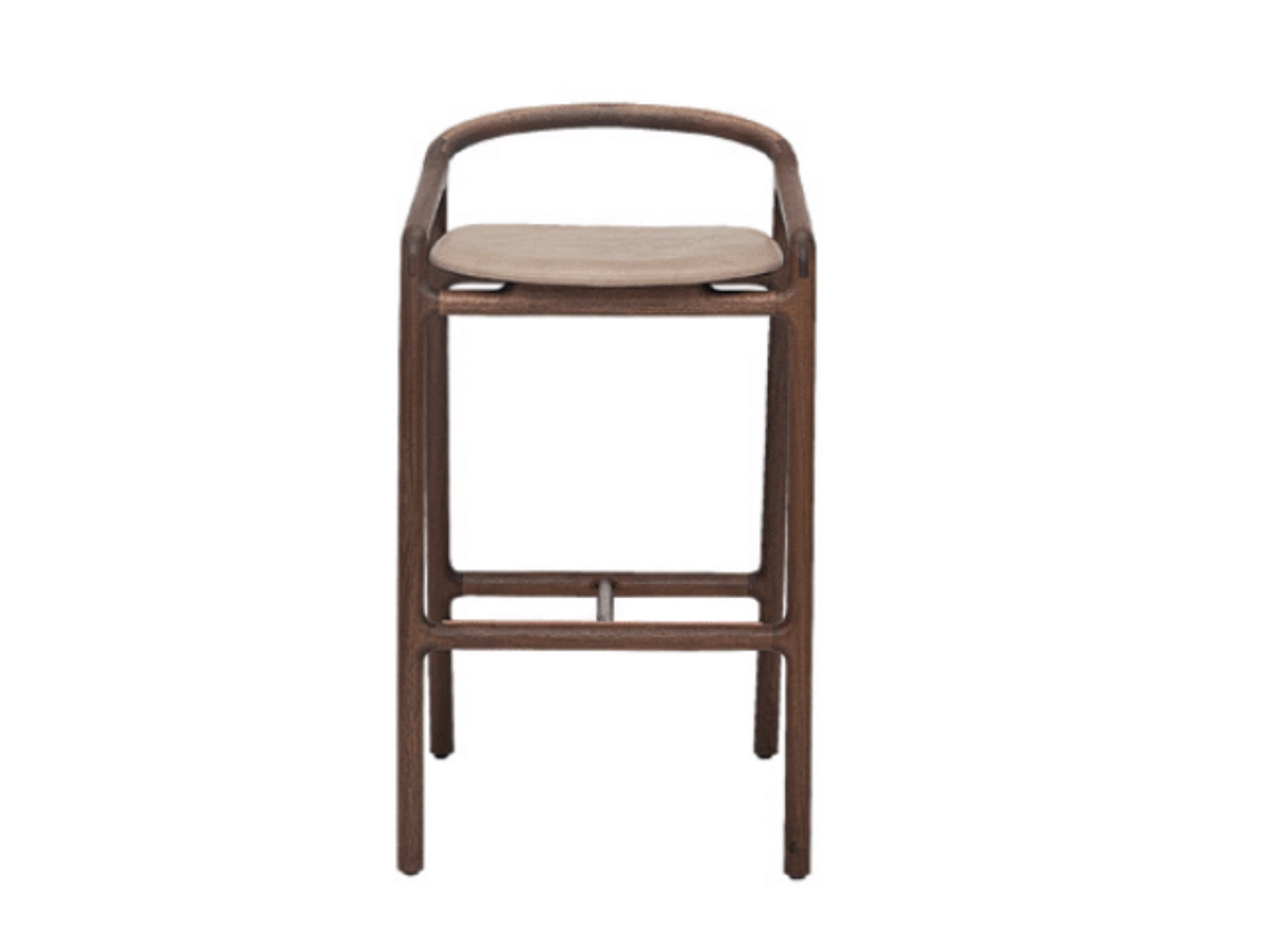Brioni Barkrukken: Beschikbaar in twee hoogtes (bar- en counterhoogte) met een stevige houten structuur en optionele zittingen in stof of leer.